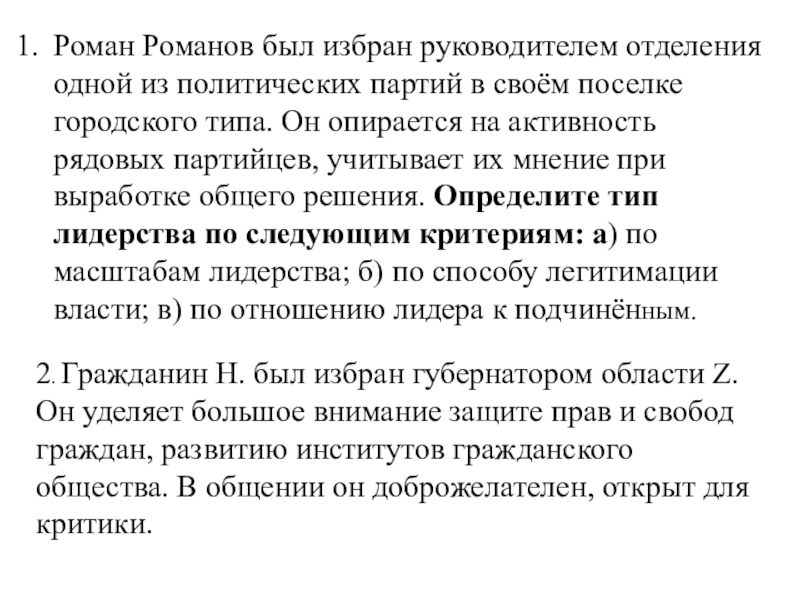 Слайд 111. Роман Романов был избран руководителем отделения одной из политических партий