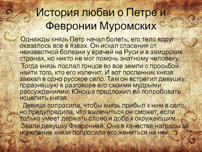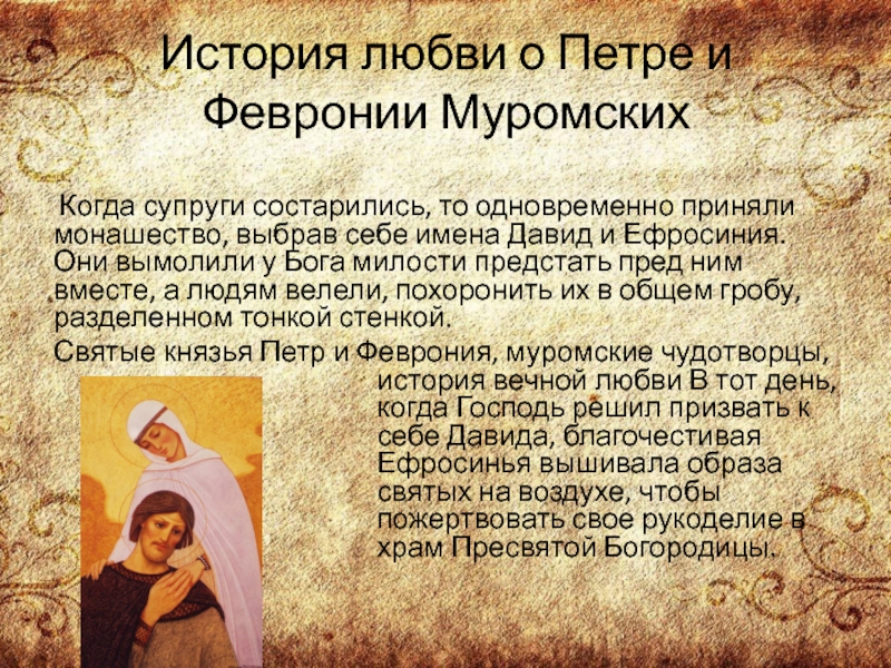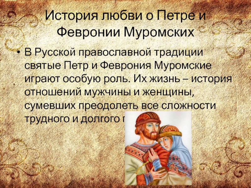 Слайд 4История любви о Петре и Февронии Муромских