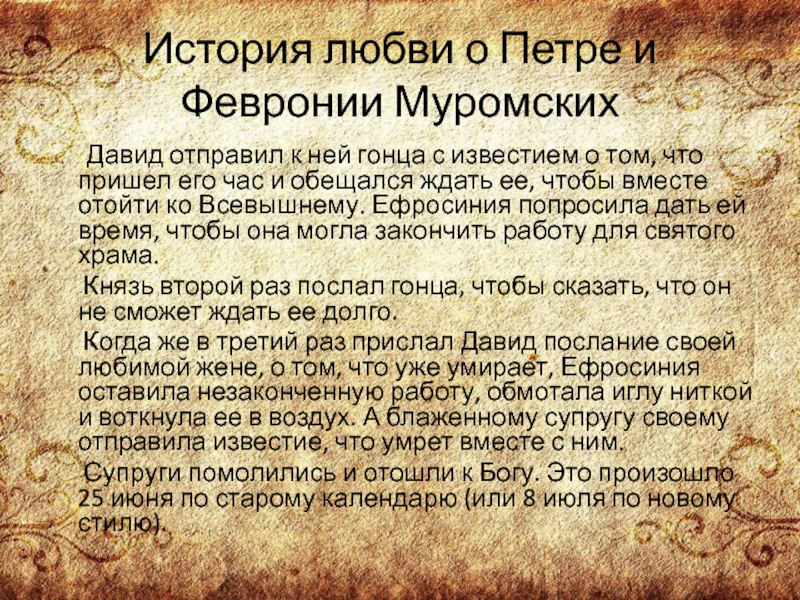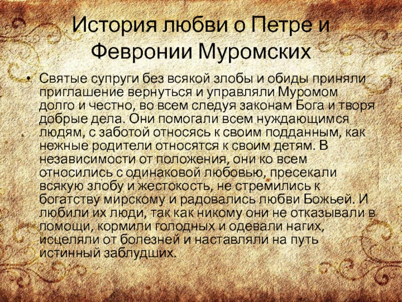 Слайд 7История любви о Петре и Февронии Муромских