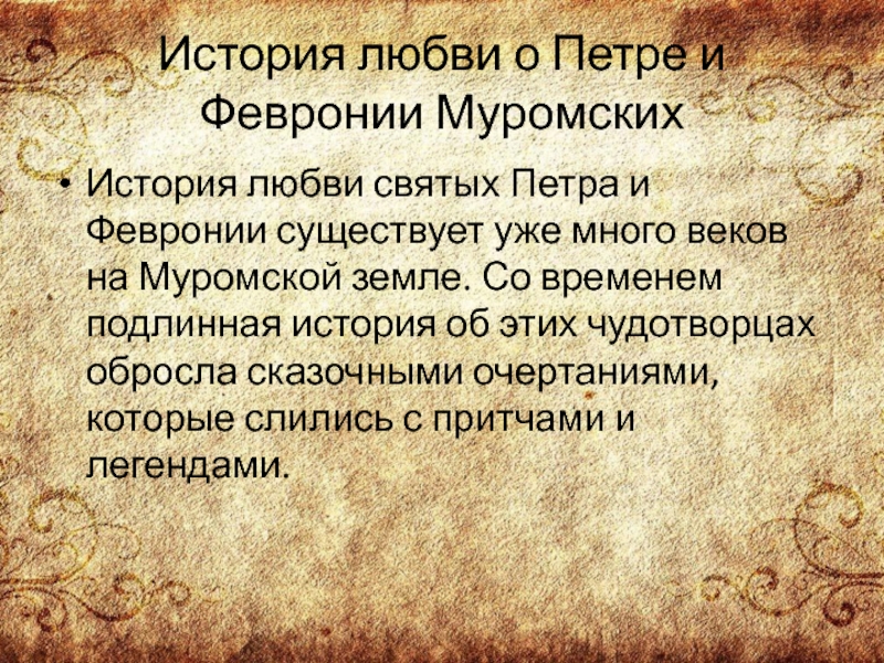 Слайд 3История любви о Петре и Февронии Муромских