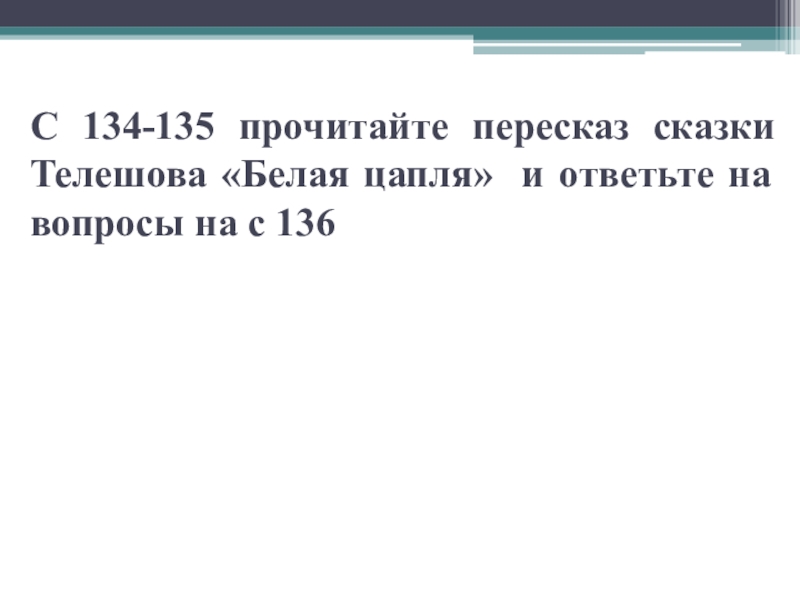 С 134-135 прочитайте пересказ сказки Телешова «Белая цапля» и ответьте на вопросы на с 136