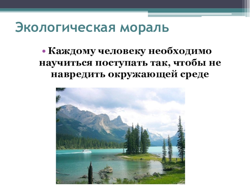 Экологическая моральКаждому человеку необходимо научиться поступать так, чтобы не навредить окружающей среде