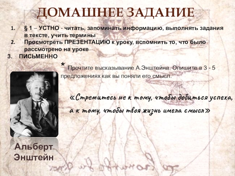* Прочтите высказывание А.Энштейна. Опишите в 3 - 5 предложениях как вы поняли его смысл.
