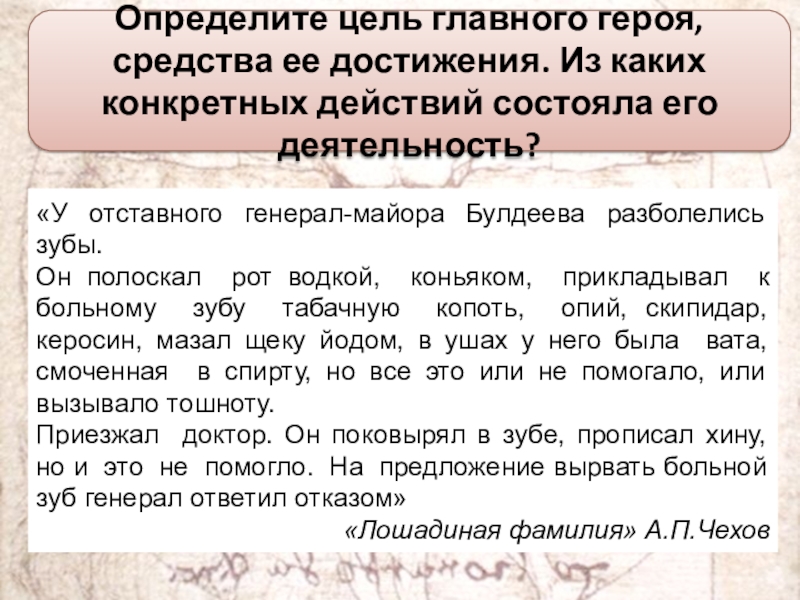 Определите цель главного героя, средства ее достижения. Из каких конкретных действий состояла его деятельность?