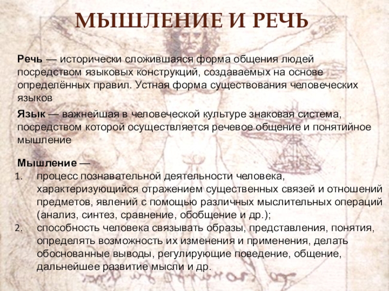 процесс познавательной деятельности человека, характеризующийся отражением существенных связей и отношений предметов, явлений с помощью различных мыслительных операций (анализ, синтез, сравнение, обобщение и др.);