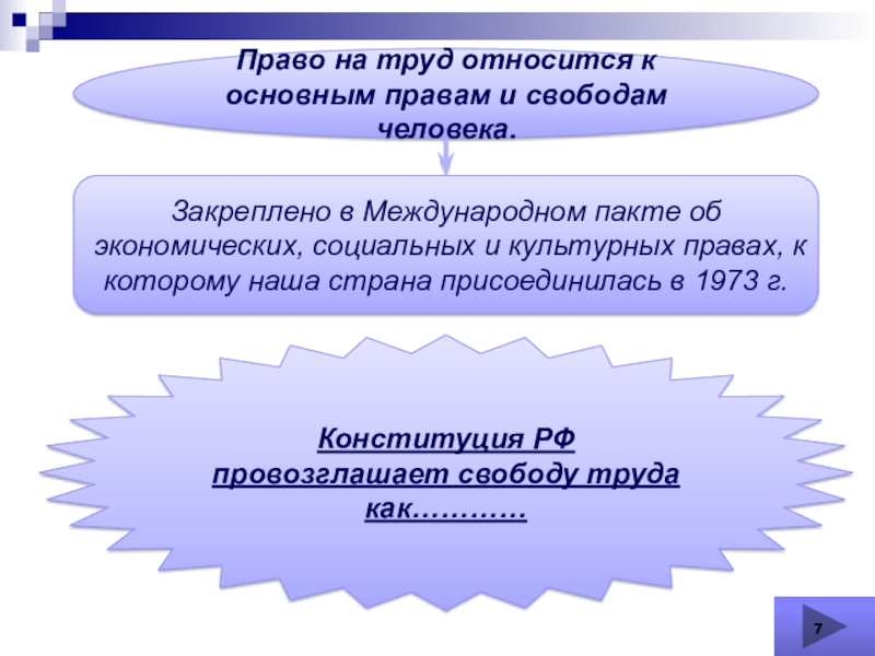 Конституция РФ провозглашает свободу труда как неотъемлемый элемент свободы личности. Свобода труда означает прежде всего запрещение принудительного труда.