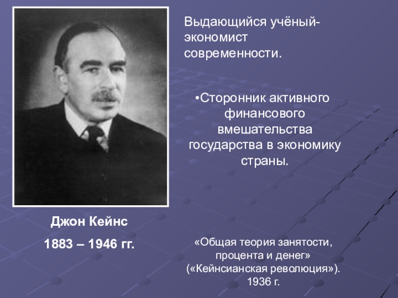 Сторонник активного финансового вмешательства государства в экономику страны.