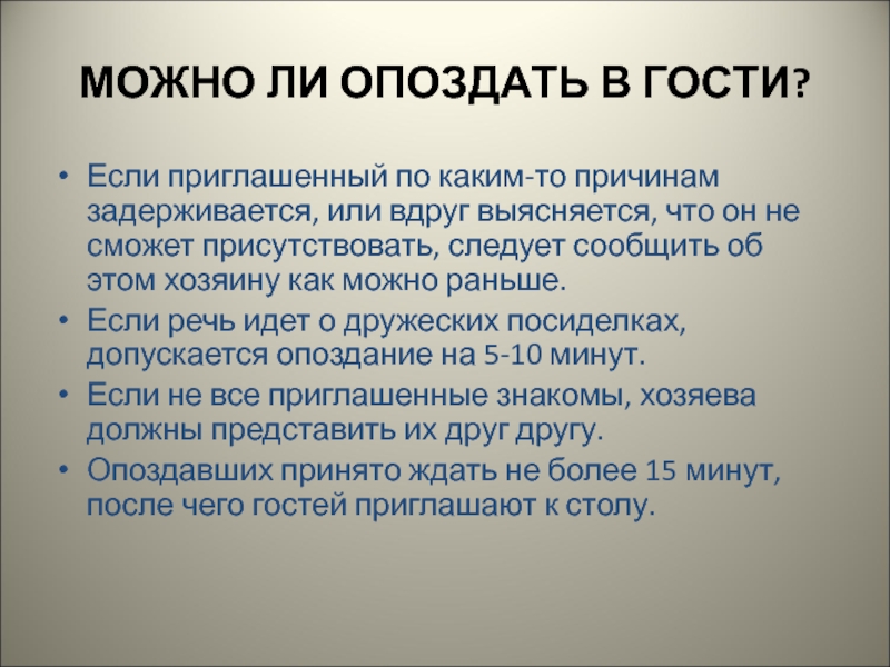Слайд 5МОЖНО ЛИ ОПОЗДАТЬ В ГОСТИ?