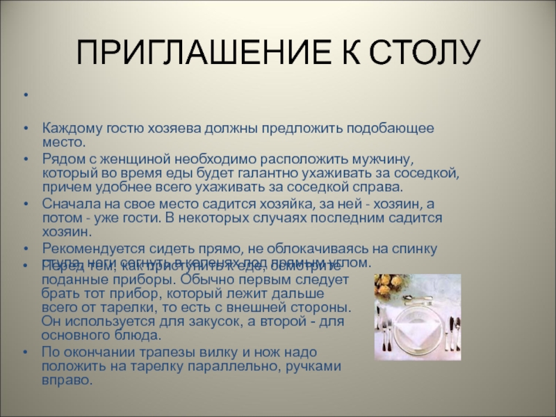 Слайд 6ПРИГЛАШЕНИЕ К СТОЛУ