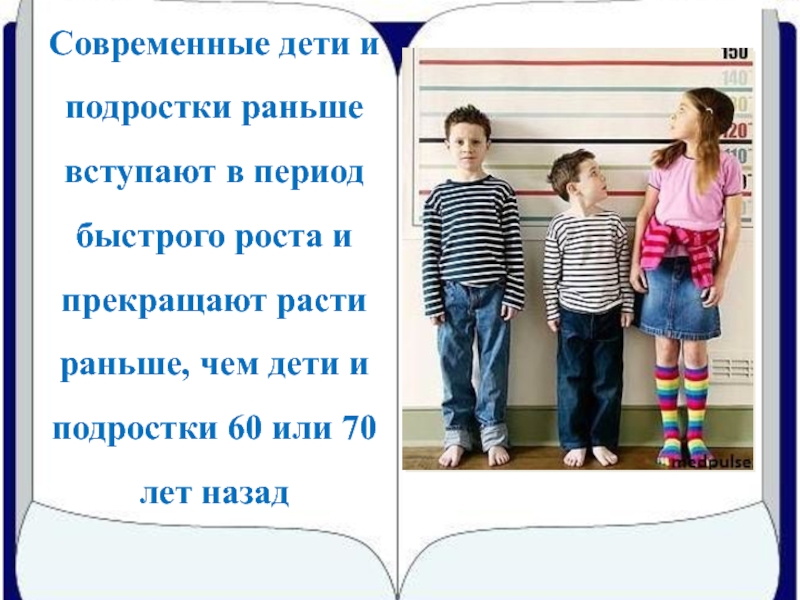 Максимальная скорость увеличения роста и веса приходится примерно на 14 лет;