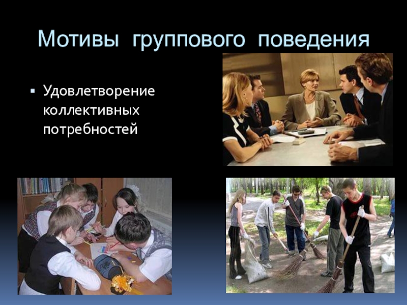 Мотивы группового поведенияУдовлетворение коллективных потребностей