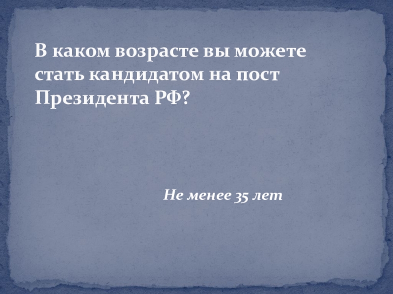 Слайд 10Почему стать Президентом Российской Федерации можно только с 35 лет?