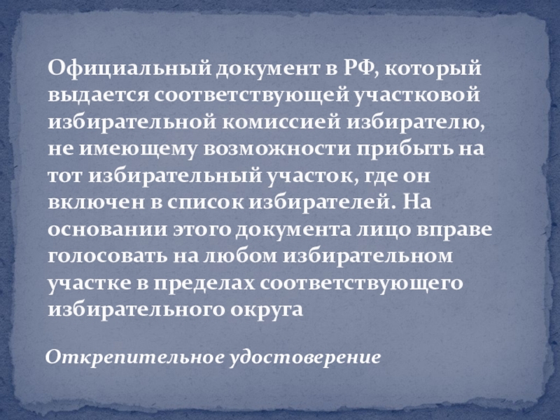 Официальный документ в РФ, который выдается соответствующей участковой избирательной комиссией