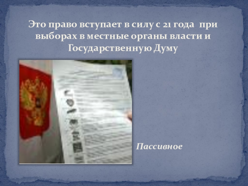 Слайд 25Это право вступает в силу с 21 года при выборах в