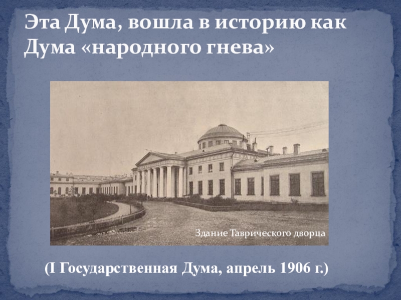 Слайд 6Эта Дума, вошла в историю как Дума «народного гнева»