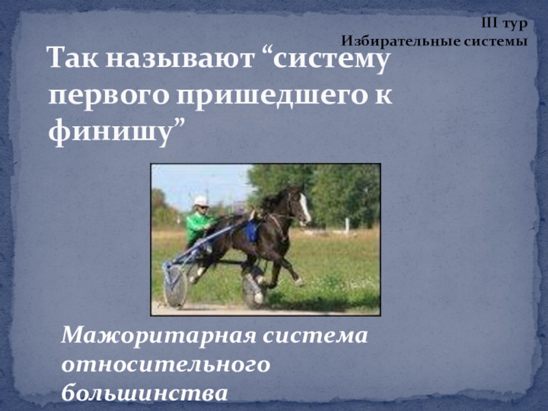 Слайд 49Так называют “систему первого пришедшего к финишу”