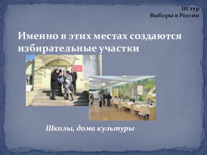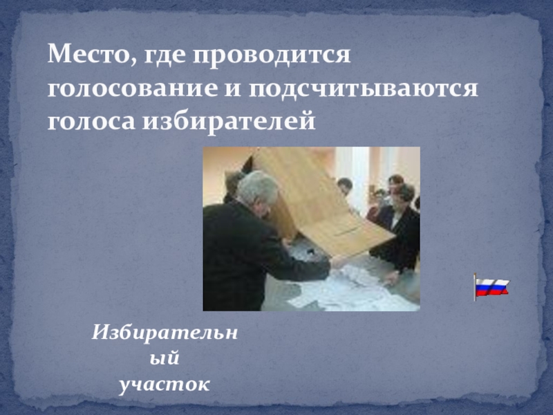 Слайд 14Место, где проводится голосование и подсчитываются голоса избирателей