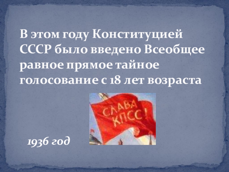 В этом году Конституцией СССР было введено Всеобщее равное прямое