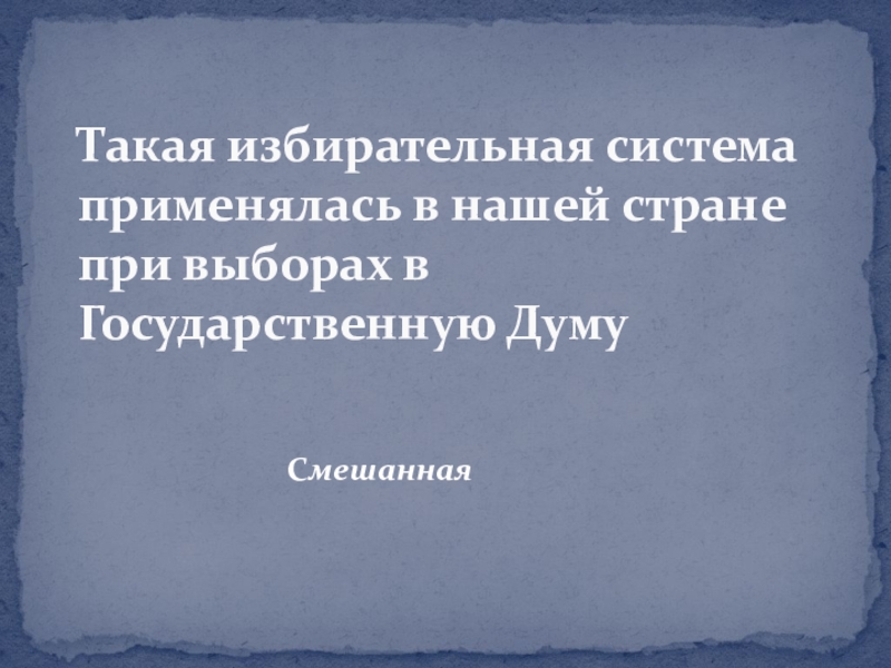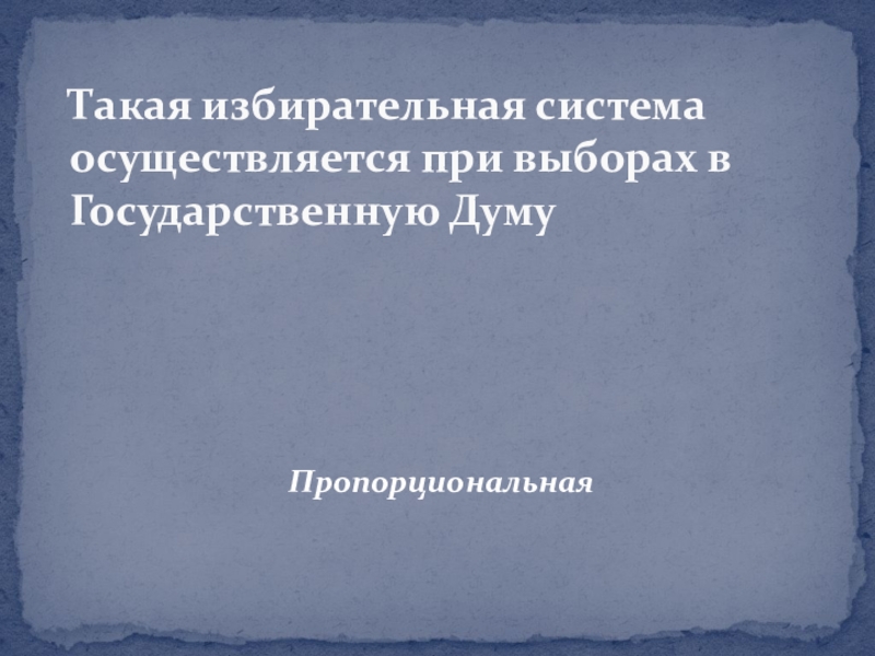 Такая избирательная система осуществляется при выборах в Государственную Думу