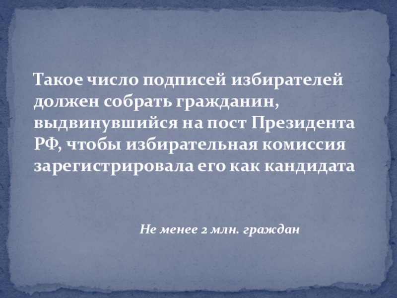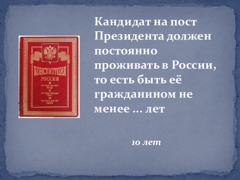 Слайд 41Кандидат на пост Президента должен постоянно проживать в России, то есть