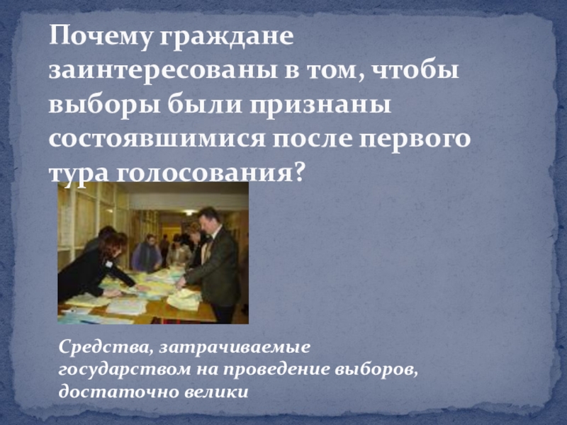 Слайд 12Почему граждане заинтересованы в том, чтобы выборы были признаны состоявшимися после