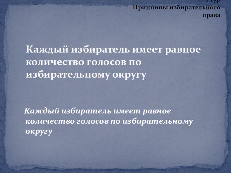 Слайд 18 Каждый избиратель имеет равное количество голосов по избирательному округу