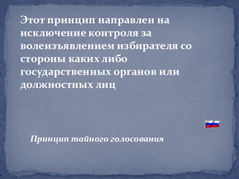 Этот принцип направлен на исключение контроля за волеизъявлением избирателя