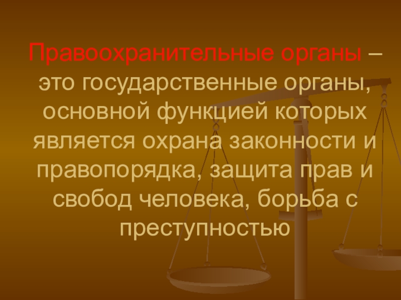Слайд 3Правоохранительные органы –это государственные органы, основной функцией которых является охрана законности