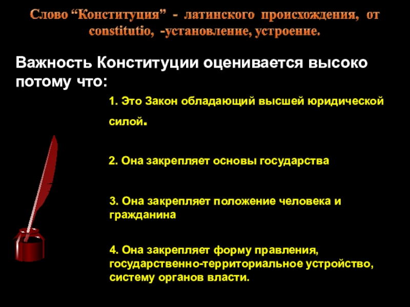 Слайд 3Важность Конституции оценивается высоко потому что: