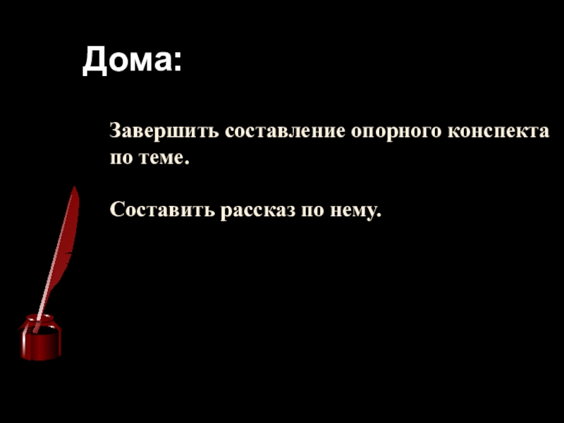 Дома:Завершить составление опорного конспекта по теме.Составить рассказ по нему.