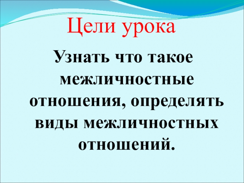 Цели урокаУзнать что такое межличностные отношения, определять виды межличностных отношений.