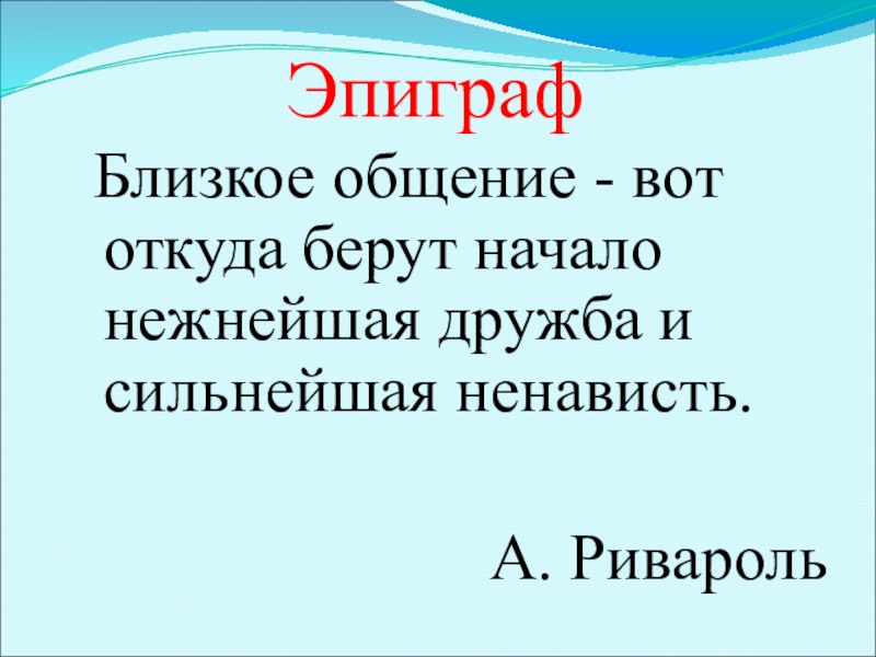 Эпиграф Близкое общение - вот откуда берут начало нежнейшая дружба и сильнейшая ненависть. А. Ривароль
