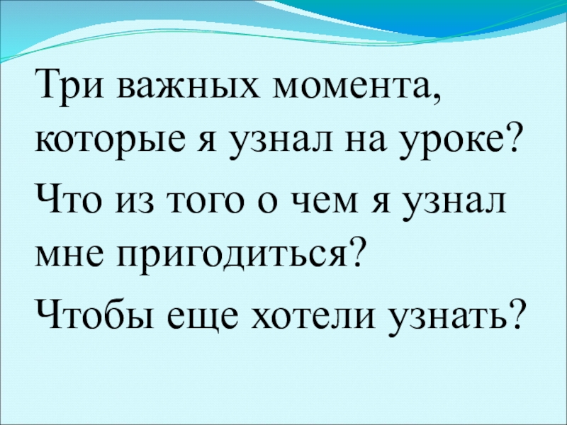 Слайд 12Три важных момента, которые я узнал на уроке?