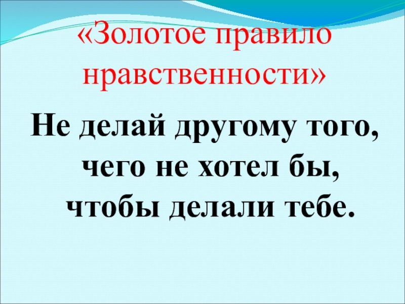 «Золотое правило нравственности»Не делай другому того, чего не хотел бы, чтобы делали тебе.