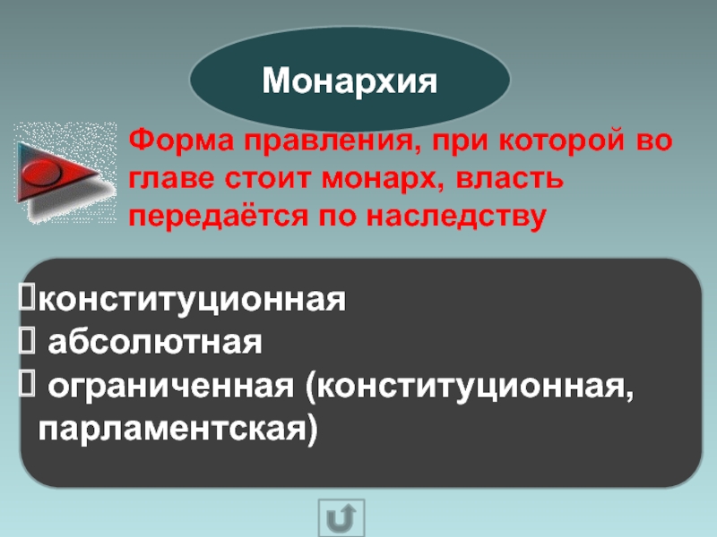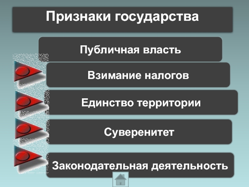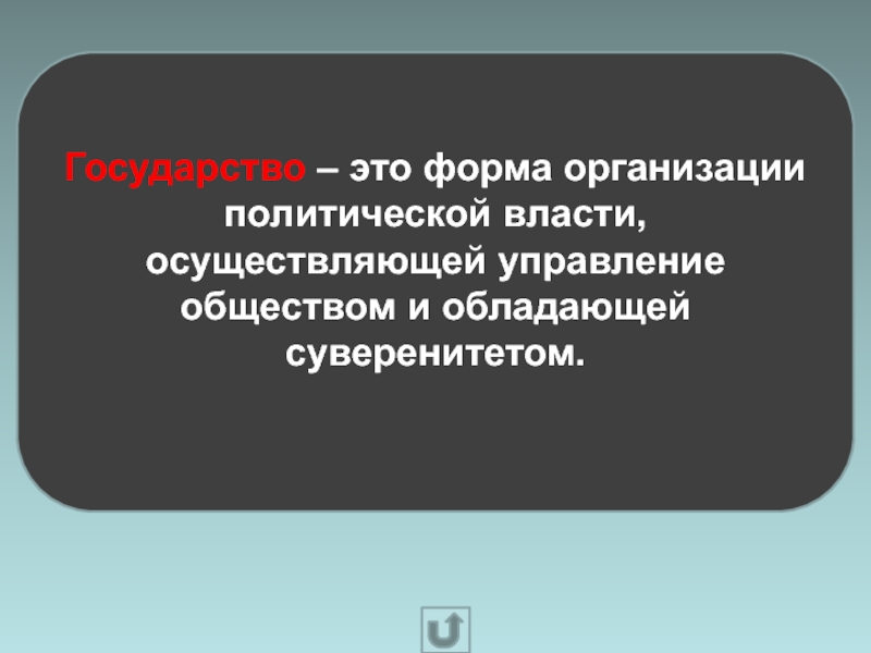Презентация по теме «Государство» предназначена для изучения в 8-9 классах и подготовки к ЕГЭ в 11 классе. Используя данную интерактивную презентацию учащийся может самостоятельно изучать (повторять) материал по данной теме, выбирая необходимые вопросы темы.