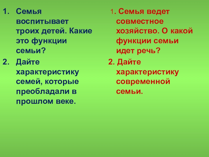 1. Семья ведет совместное хозяйство. О какой функции семьи идет речь?