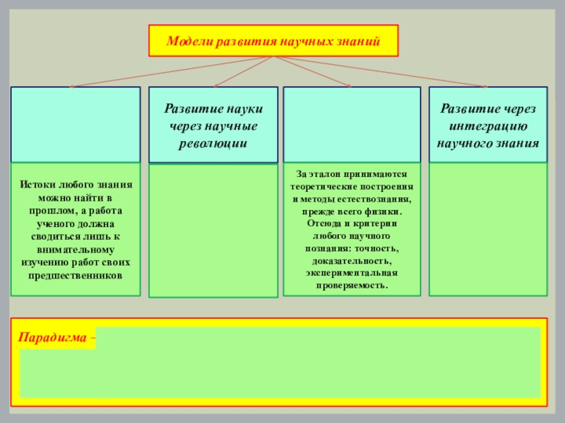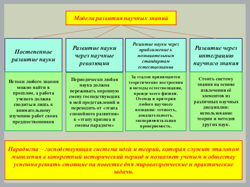Парадигма – господствующая система идей и теорий, которая служит эталоном мышления в конкретный исторический период и позволяет ученым и обществу успешно решать стоящие на повестке дня мировоззренческие и практические задачи.