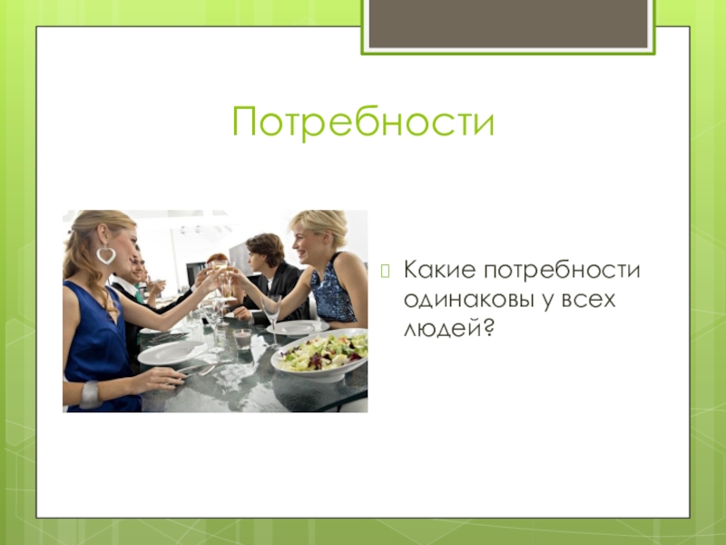 ПотребностиОдин человек отличается от другого своими потребностями (физические особенности, характер, интересы).