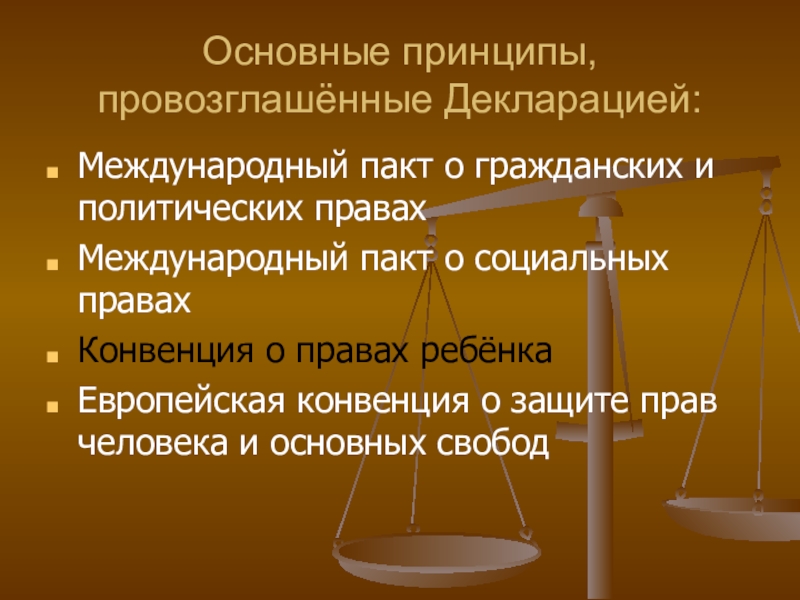 Слайд 13Основные принципы, провозглашённые Декларацией: