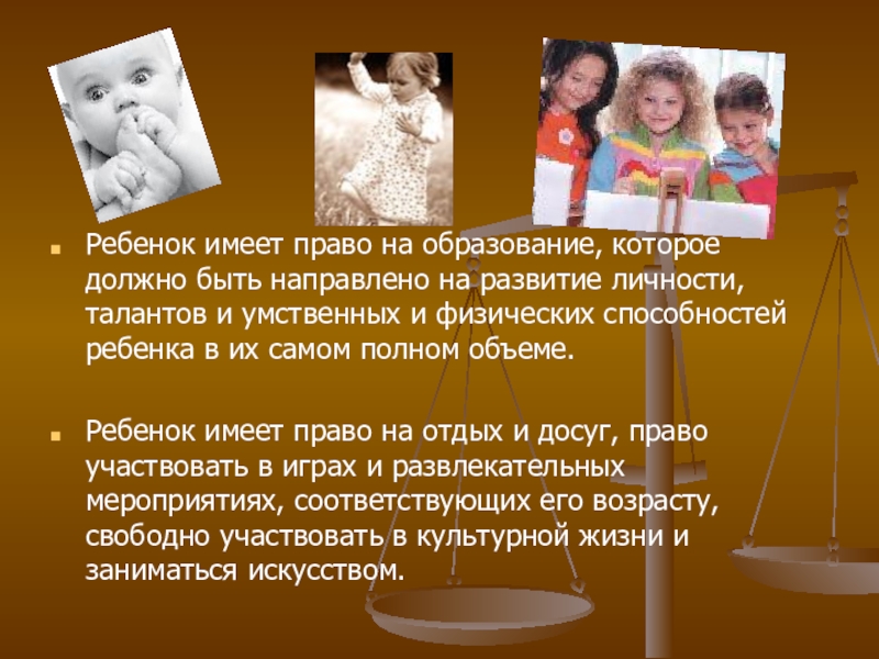 Слайд 18Ребенок имеет право на образование, которое должно быть направлено на развитие