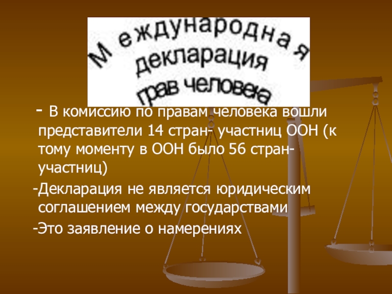 Слайд 12 - В комиссию по правам человека вошли представители 14 стран-