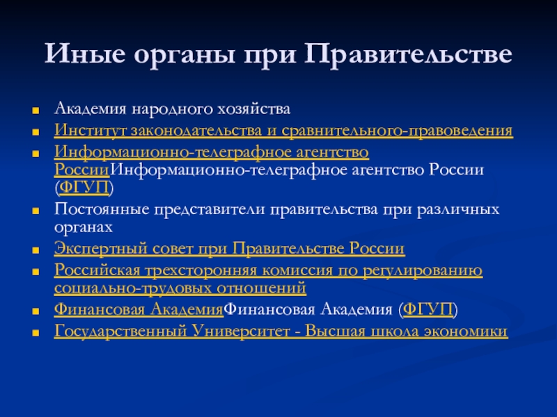 Слайд 2Правительство Российской Федерации — высший федеральный орган — высший федеральный орган, осуществляющий исполнительную