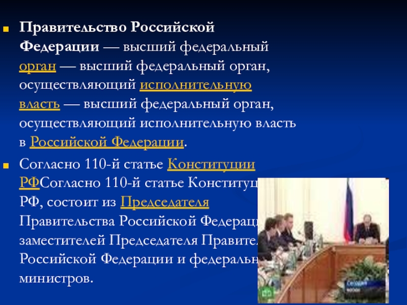 власть — высший федеральный орган, осуществляющий исполнительную власть в Российской Федерации.