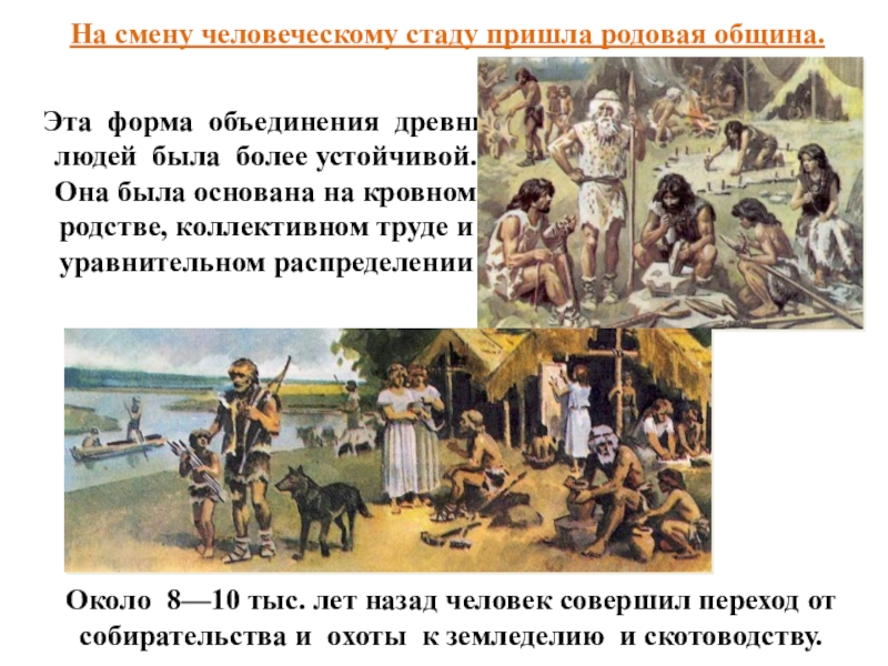 Около 8—10 тыс. лет назад человек совершил переход от собирательства и охоты к земледелию и скотоводству.