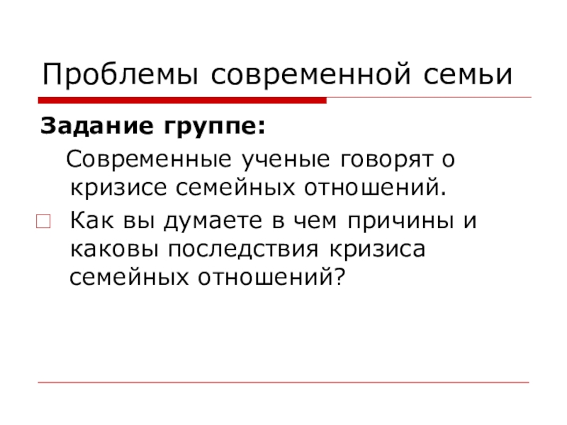Как вы думаете в чем причины и каковы последствия кризиса семейных отношений?