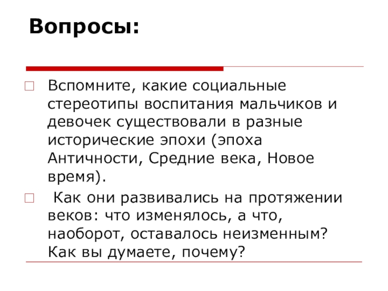 Вспомните, какие социальные стереотипы воспитания мальчиков и девочек существовали в разные