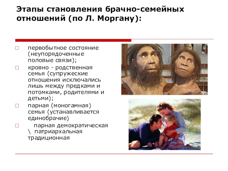 Слайд 6Этапы становления брачно-семейных отношений (по Л. Моргану):