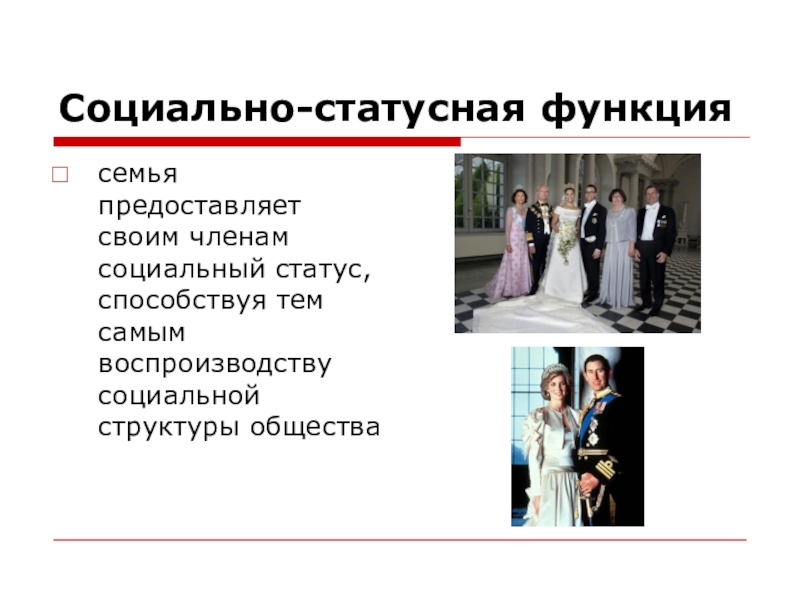 семья предоставляет своим членам социальный статус, способствуя тем самым
