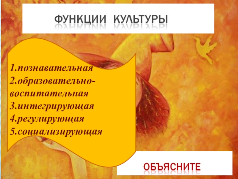 1.познавательная2.образовательно-воспитательная3.интегрирующая4.регулирующая5.социализирующая