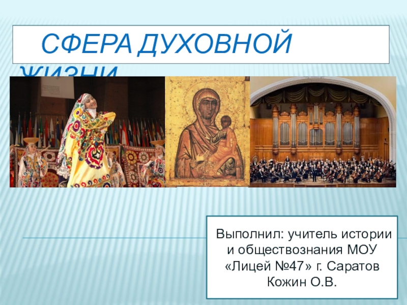 СФЕРА ДУХОВНОЙ ЖИЗНИ Выполнил: учитель истории и обществознания МОУ «Лицей №47» г. СаратовКожин О.В.